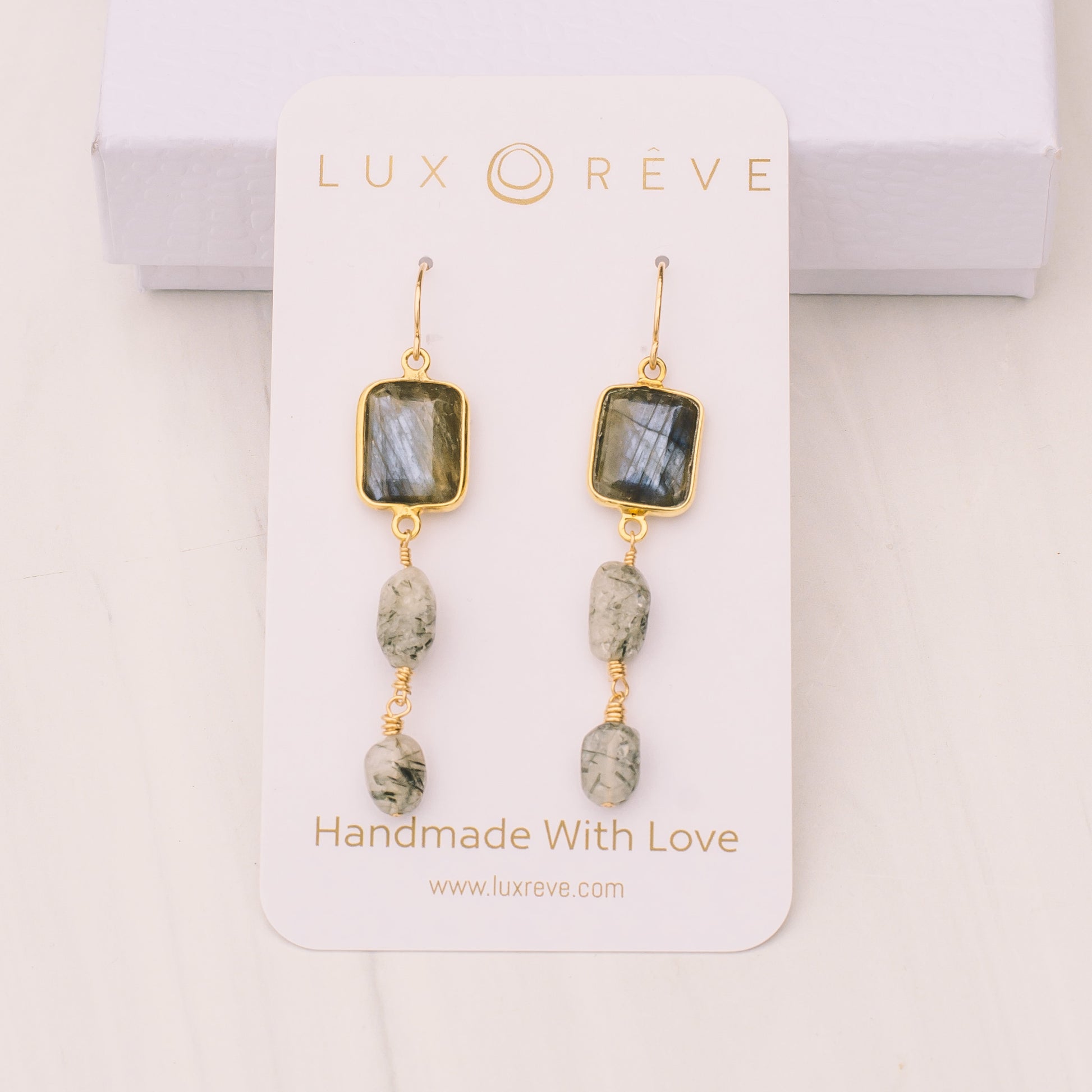 Brighten your look with these charming Labradorite and Tourmaline Quartz earrings! Featuring square-shaped stones set in shimmering gold-plated bezels, they bring a pop of color and sparkle wherever you go. The gold-filled hypoallergenic ear wires keep them comfy and safe for sensitive ears.