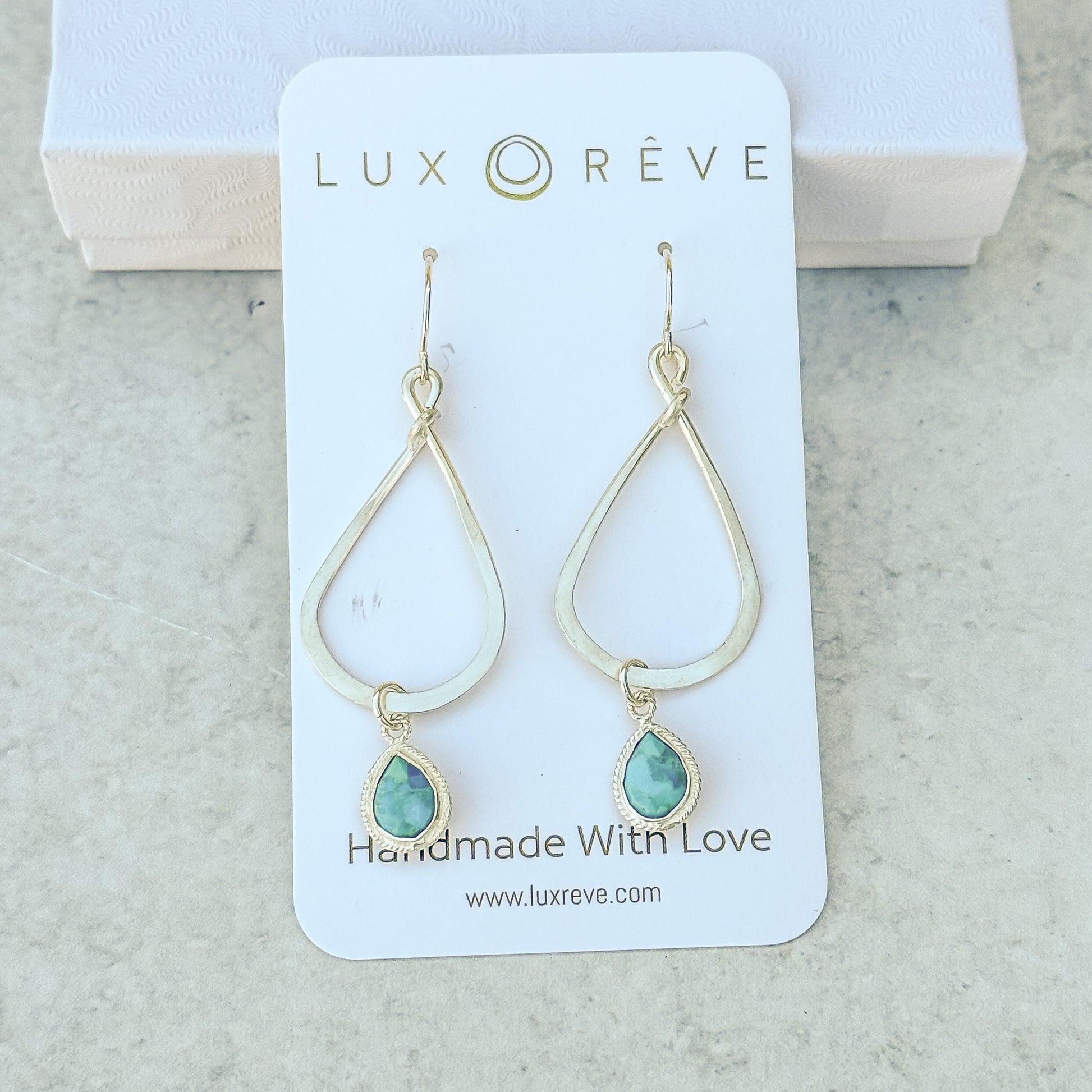 Elevate your style game with these handcrafted, hammered sterling silver tear drop hoops featuring stunning silver bezel turquoise gemstones. A unique and playful addition to any outfit!